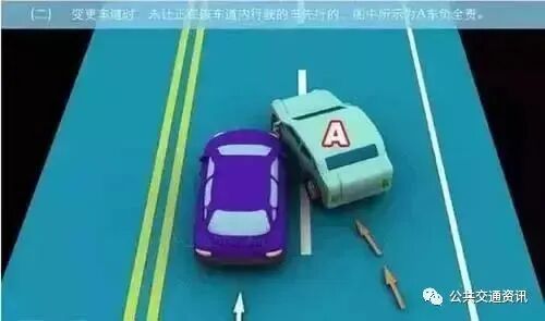 (二)变更车道时,未让正在该车道行驶的车先行的,图中所示为A车负全责。